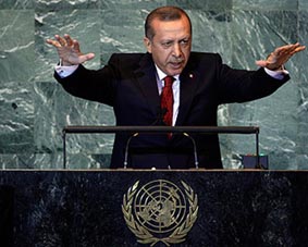 Մ.Ա.Կ.-ի Գլխաւոր վեհաժողովի նստաշրջանում երէկ աւելի ուշ ելոյթ է ունեցել նաեւ Թուրքիայի նախագահ Ռեջեփ Թայիփ Էրդողանը։ Յատկանշական է, որ շուրջ 15 րոպէանոց ելոյթում, որում գլխաւորաբար նա կենտրոնացաւ մերձաւոր-արեւելեան ճգնաժամի, պաղեստինցիների իրաւունքների վրայ, որեւէ խօսք չասաց երկու ժամ առաջ Սերժ Սարգսեանի ելոյթում Թուրքիայի հասցէին հնչեցւած սուր ձեւակերպումներին։