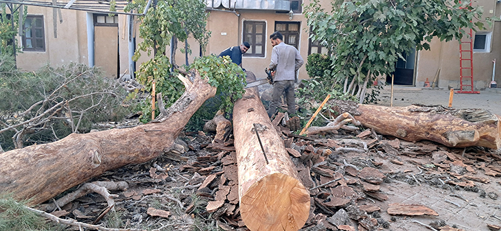 Տարիների ընթացքում իրենց կենսունակութիւնը կորցրաց, չորացած եւ վթարային այս ծառերը, ուժեղ քամիների ժամանակ կոտրւելու եւ ընկնելու վտանգ էին ներկայացնում՝ սպառնալով եկեղեցու շէնքի եւ եկեղեցի յաճախողների անվտանգութիւնը։