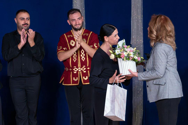 Երեկոյի աւարտին, որպէս շնորհակալական եւ շնորհաւորանքի արտայայտութիւն, Հայուհեաց Բարեգործական ընկերութեան նախագահուհի Մարօ Աղախանեանը ծաղկեփունջ եւ յուշանւէր յանձնեց խմբի ղեկավարին: