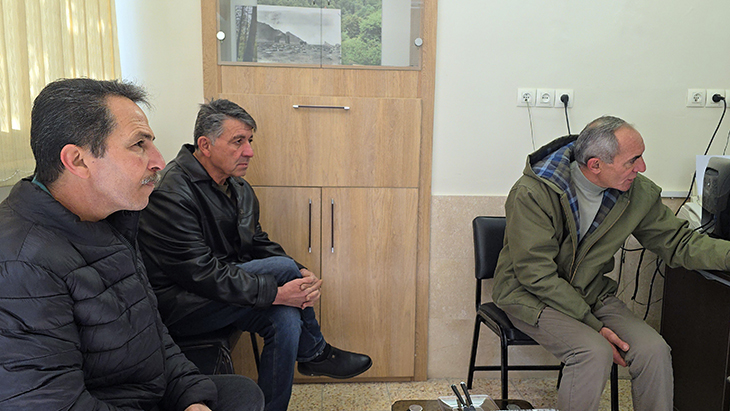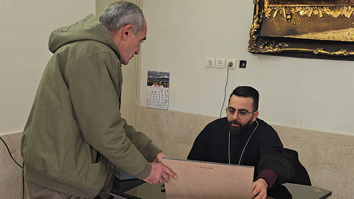 Հանդիպումն աւարտւեց քարտաշութեան արհեստանոց այցելութեամբ, որտեղ համայնքիս հմուտ քարտաշ` Սուրէն Մինասեանը ներկայացրեց իր աշխատանքն ու յատուկ գնահատանքի արժանացաւ Հայր Սուրբի կողմից։