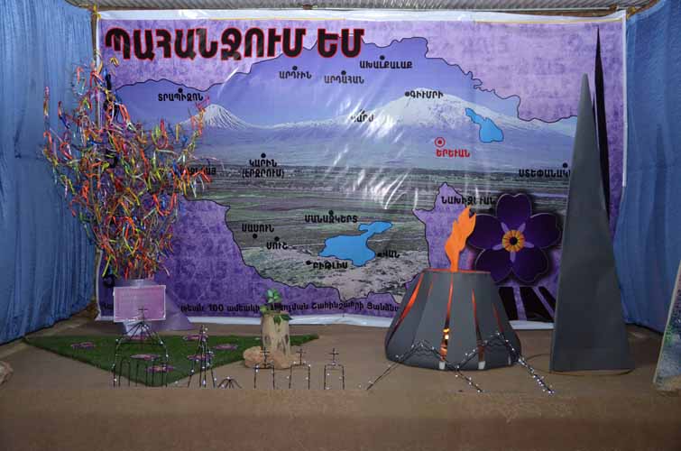 Ապա Ոգեկոչման յանձնախմբի դասաւորումով հայորդիները ծաղիկներով եւ վառւած մոմերով՝ ակնածութեամբ մօտենալով խաչքար-յուշարձանին, խնկարկեցին բիւրաւոր նահատակների յիշատակին: Համահաւաքից յետոյ դպրոցի սրահում ցուցադրւեց վաւերագրական տեսանիւթ՝ Հայոց ցեղասպանութեան վերաբերեալ: